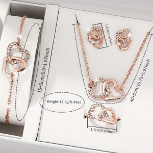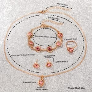 Ensemble de 6 pièces décontractée avec ensemble de bijoux de strass en forme de cœur, parfait comme cadeau