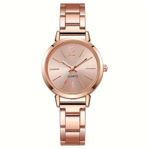 4pcs Montre à Quartz Élégante sans Boîte pour Femme avec Cadran Minimaliste & Ensemble Bracelet , Alliage de Zinc