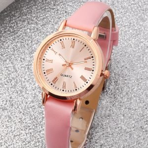 Ensemble 6 pièces sans Boîte Montre élégante pour femme, rose bijoux cœur assorti, en similicuir