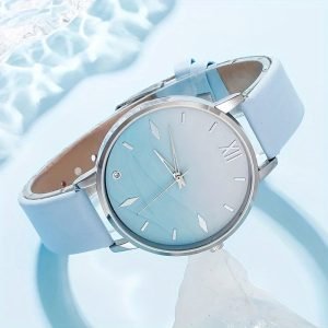 6pcs Ensemble sans Boîte , Montre à Quartz avec Strass Bleus et Bracelet en Cuir – Cadeaux pour Femmes