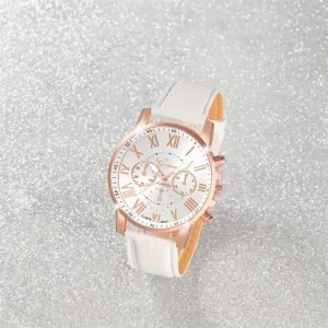 Ensemble de 6pc sans Boîte , Montre à quartz élégante pour femme avec cadran à chiffres romains , bracelet en cuir