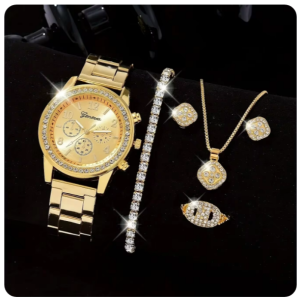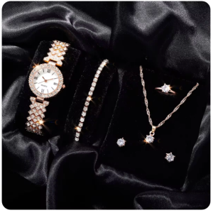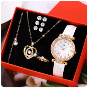 Ensemble montre de luxe , bague, collier, boucles d’oreilles, bracelet, 6 pièces pour femme