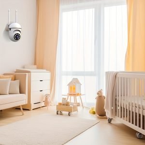 Caméra de Sécurité Intérieure JOOAN 1080P avec Vision Nocturne Couleur, Visée à 355°, Alertes de Mouvement, Audio Bidirectionnel, Montage Mural, Alimentée par USB, Compatible WiFi, Contrôle par Application – Non Étanche