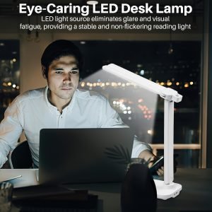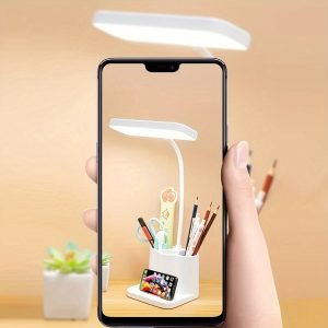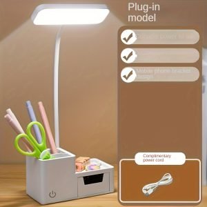 Lampe de Bureau LED avec 3 Modes de Couleur, Contrôle Tactile, Porte-Stylo Intégré et Support pour Téléphone – Alimentée par USB