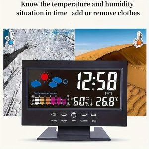 Horloge SUTAN avec commande vocale, affichage de la température et de l’humidité – alimenté par piles avec câble d’alimentation USB