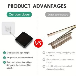 Fermeture automatique de porte – Installation facile, silencieux, force réglable pour salle de bain, bureau, maison – compatible avec les portes standard