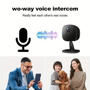 Caméra de Sécurité Intérieure FHD avec Audio Bidirectionnel, Vision Nocturne Infrarouge pour Animaux/Enfants , 2,4G WiFi & Contrôle par Application