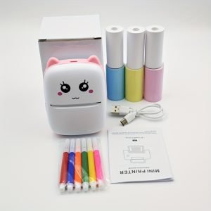 Mini imprimante thermique, chargement USB, 5 papier thermique, 5 papier autocollant, 3 papier coloré, 6 stylos de couleur
