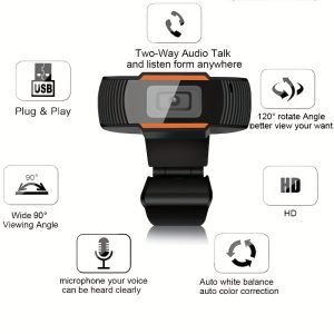 webcam Full HD 1080P avec microphone, compatible avec l’interface USB, adaptée aux ordinateurs portables et de bureau