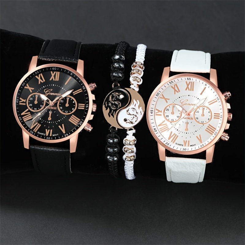 4pcs Montre Couple Bijoux Sophistiqué Et Élégant