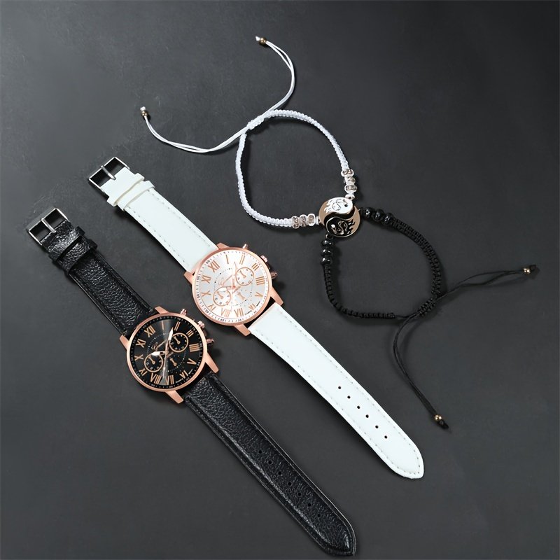 Ensemble de 4pcs sans Boîte, Montre Quartz et Bracelet pour Couple – Exquis à Offrir à l’Amour de Votre Vie
