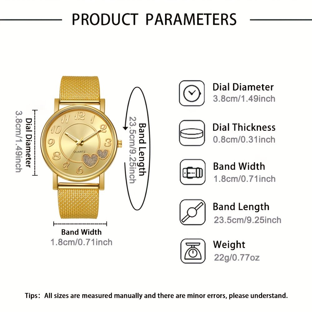 Montre à quartz sans Boite pour femme , coeur, ensemble de bijoux, ensemble de 6 pièces