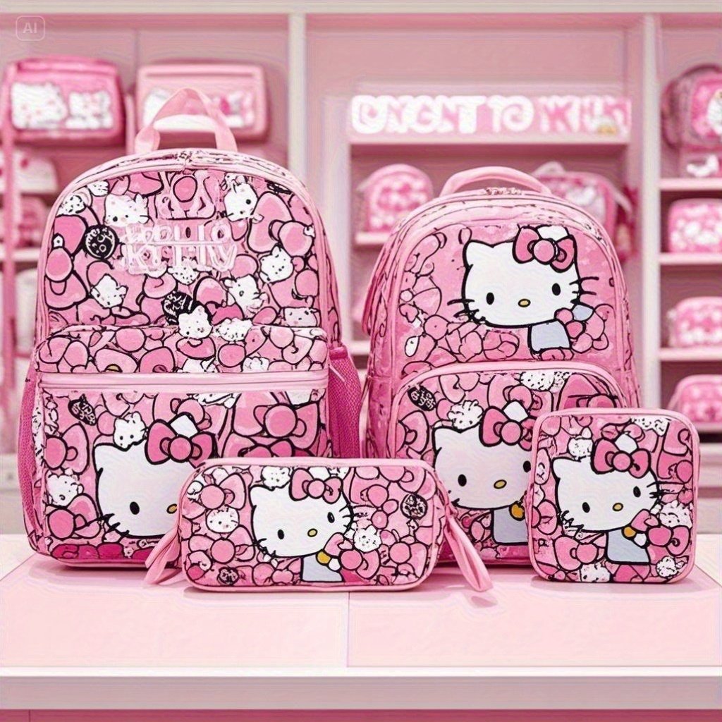 Ensemble de quatre pièces hello kitty Kulomi Backpack avec fermeture à cordon – Idéal , les voyages