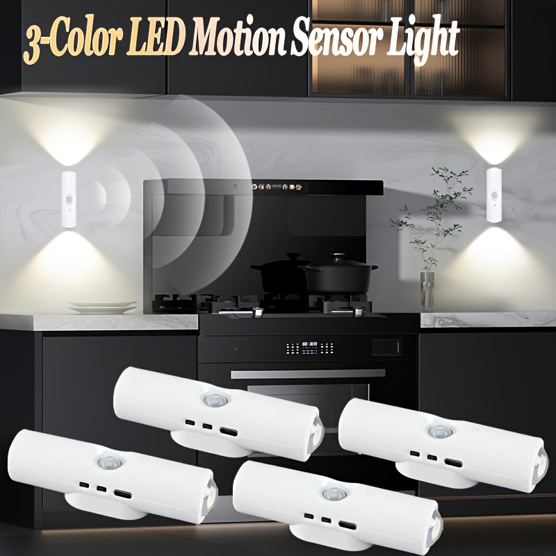 LED à détection de mouvement | 3 couleurs et gradient RGB, rechargeables par USB, montage mural, plastique poli
