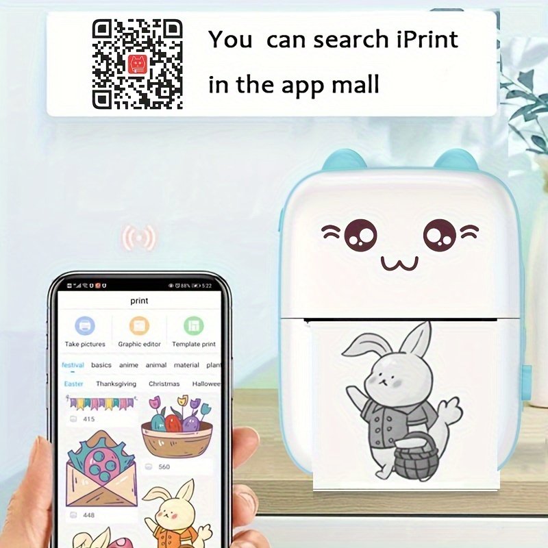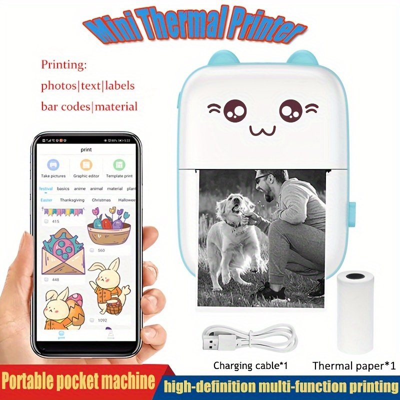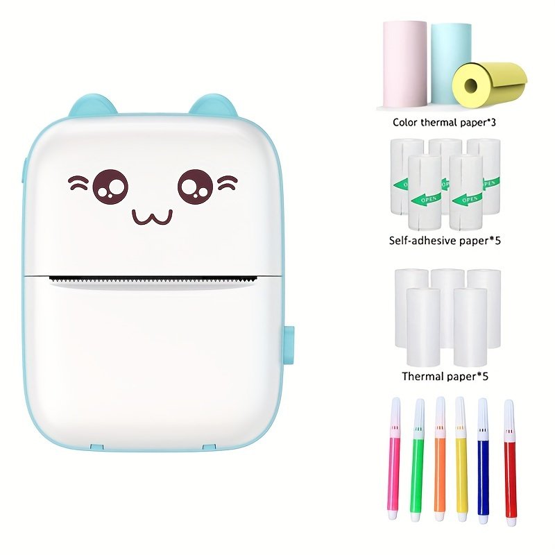Mini imprimante thermique, chargement USB, 5 papier thermique, 5 papier autocollant, 3 papier coloré, 6 stylos de couleur