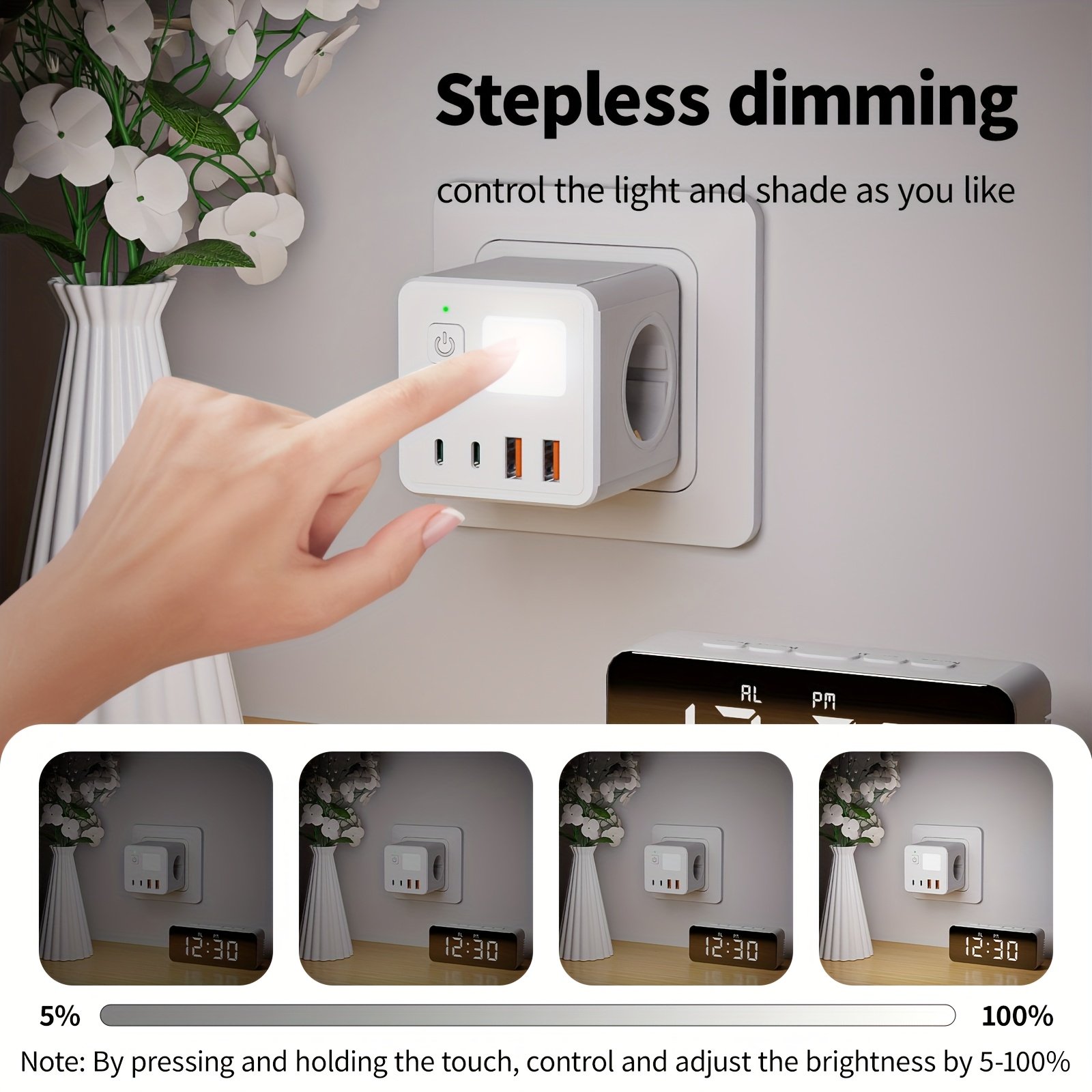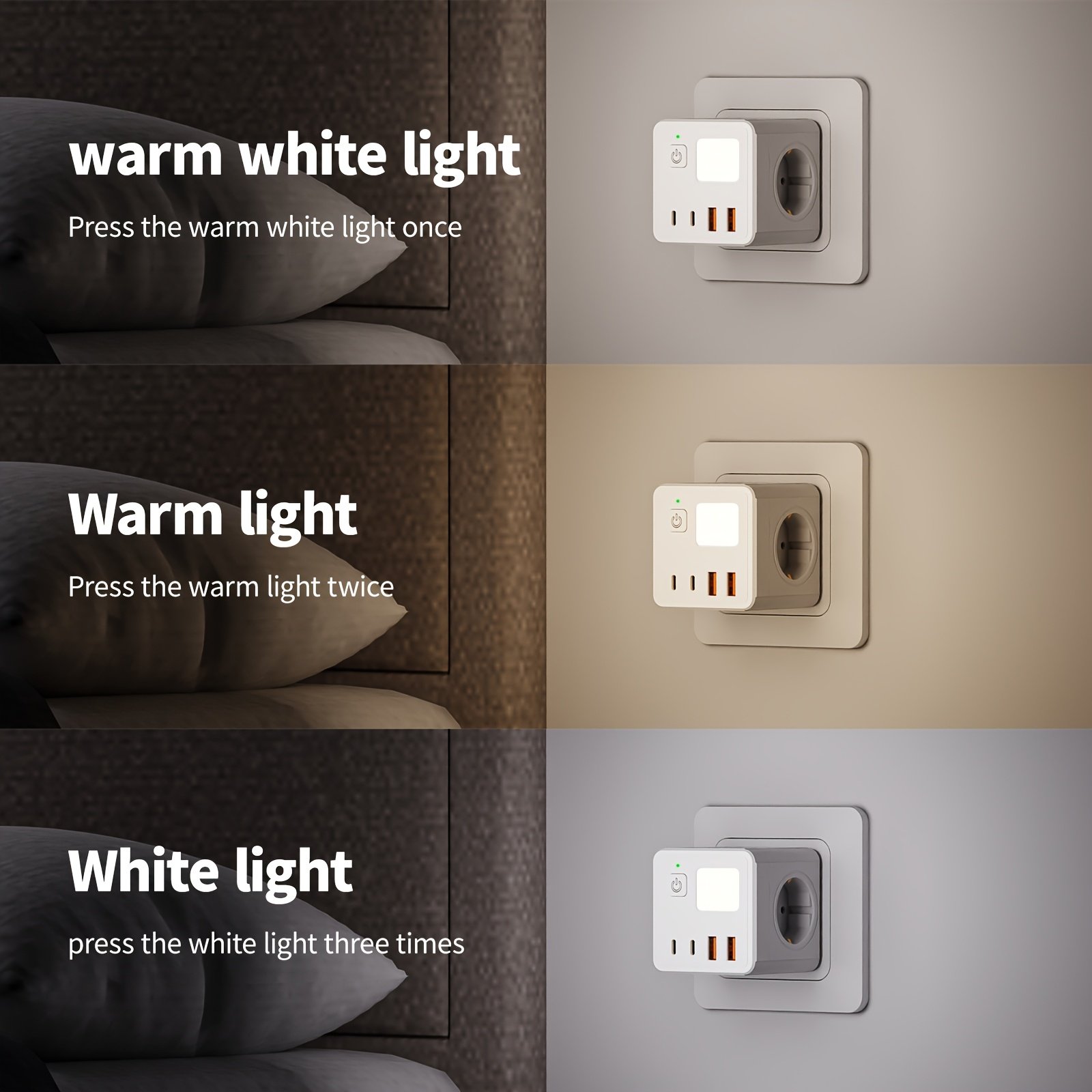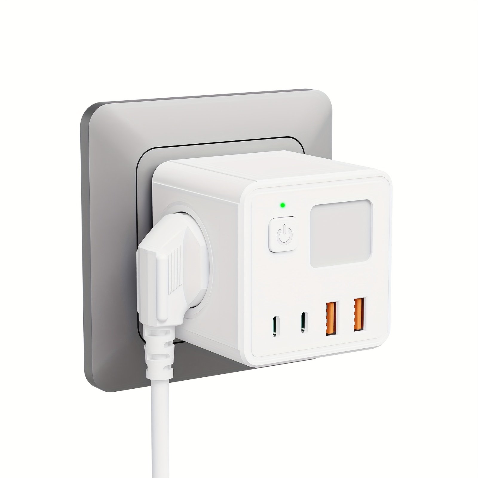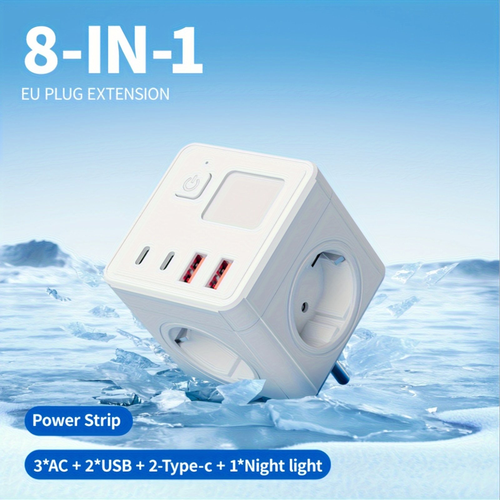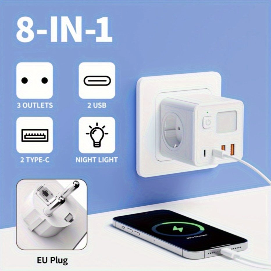 Multiprise UE 8-en-1 avec 3 ports USB, 2 ports Type-C, 3 prises – Blanc, design compact pour la maison, le bureau et plus