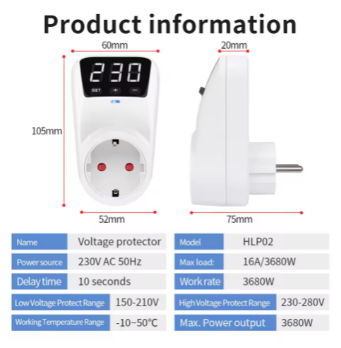 Nouvelle prise de Protection de tension réglable AC 230V 16A, Protection contre les surtensions automatique