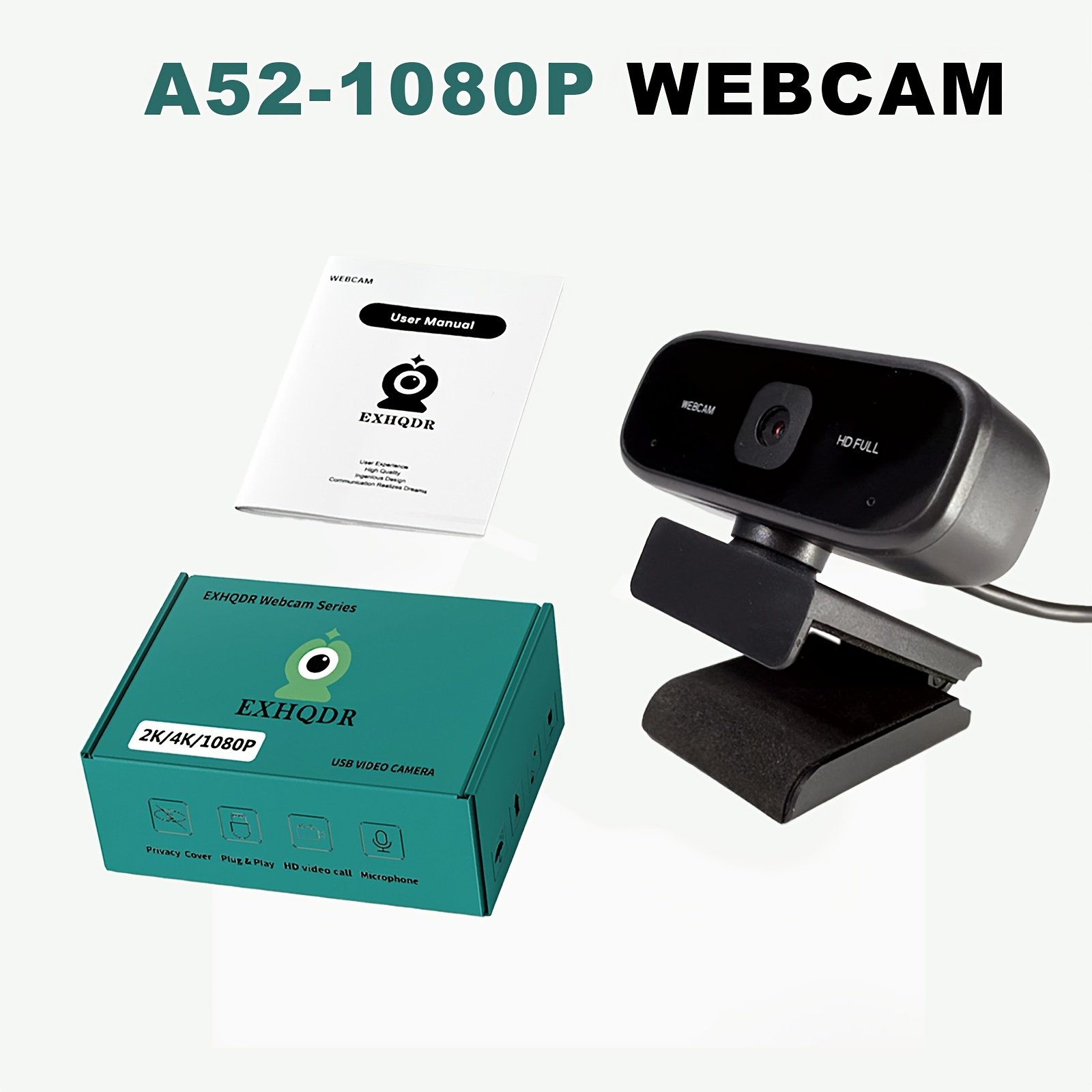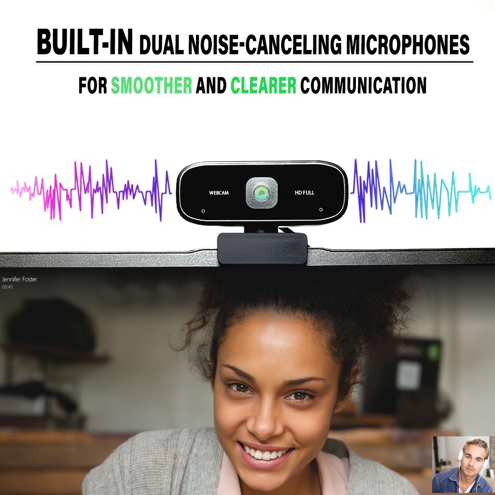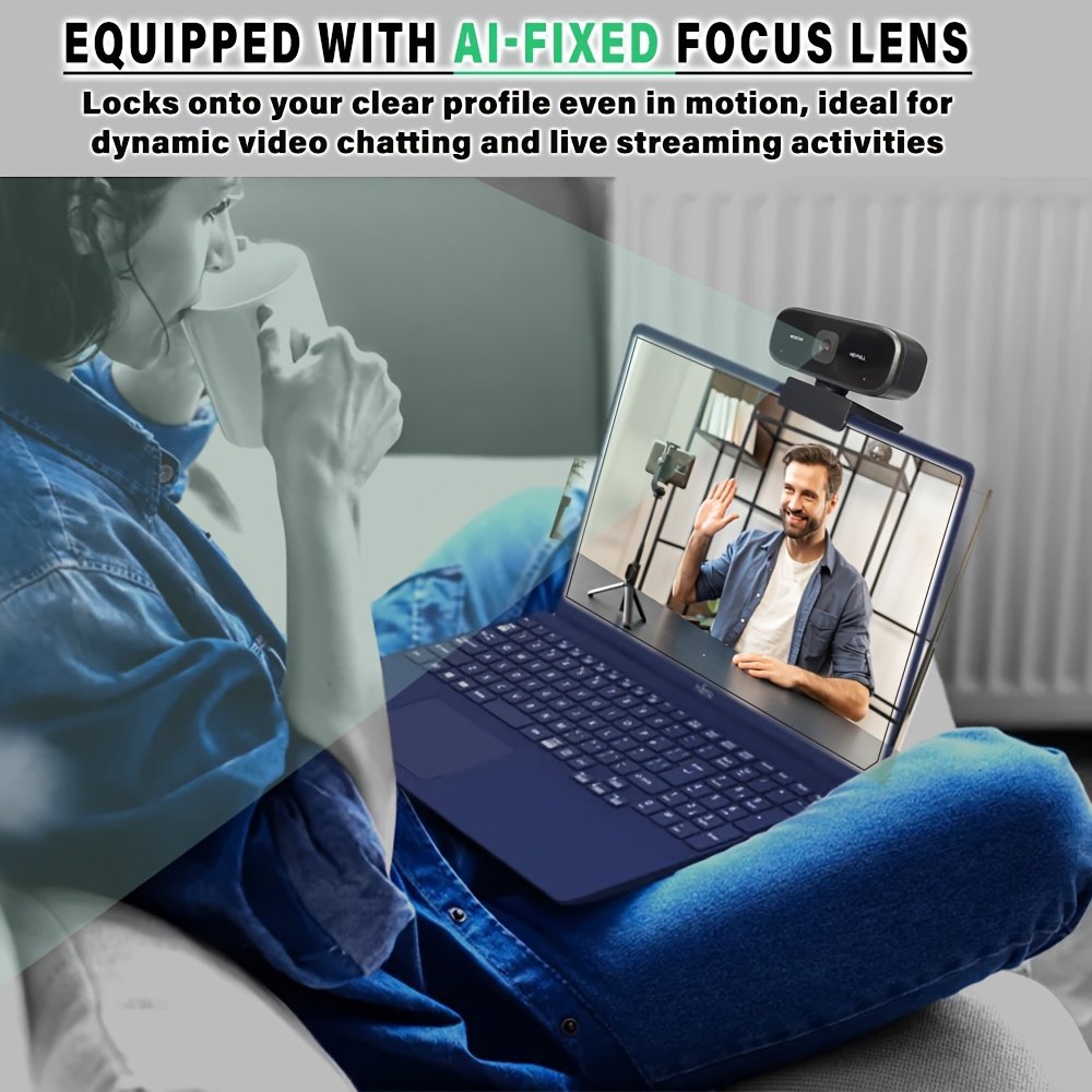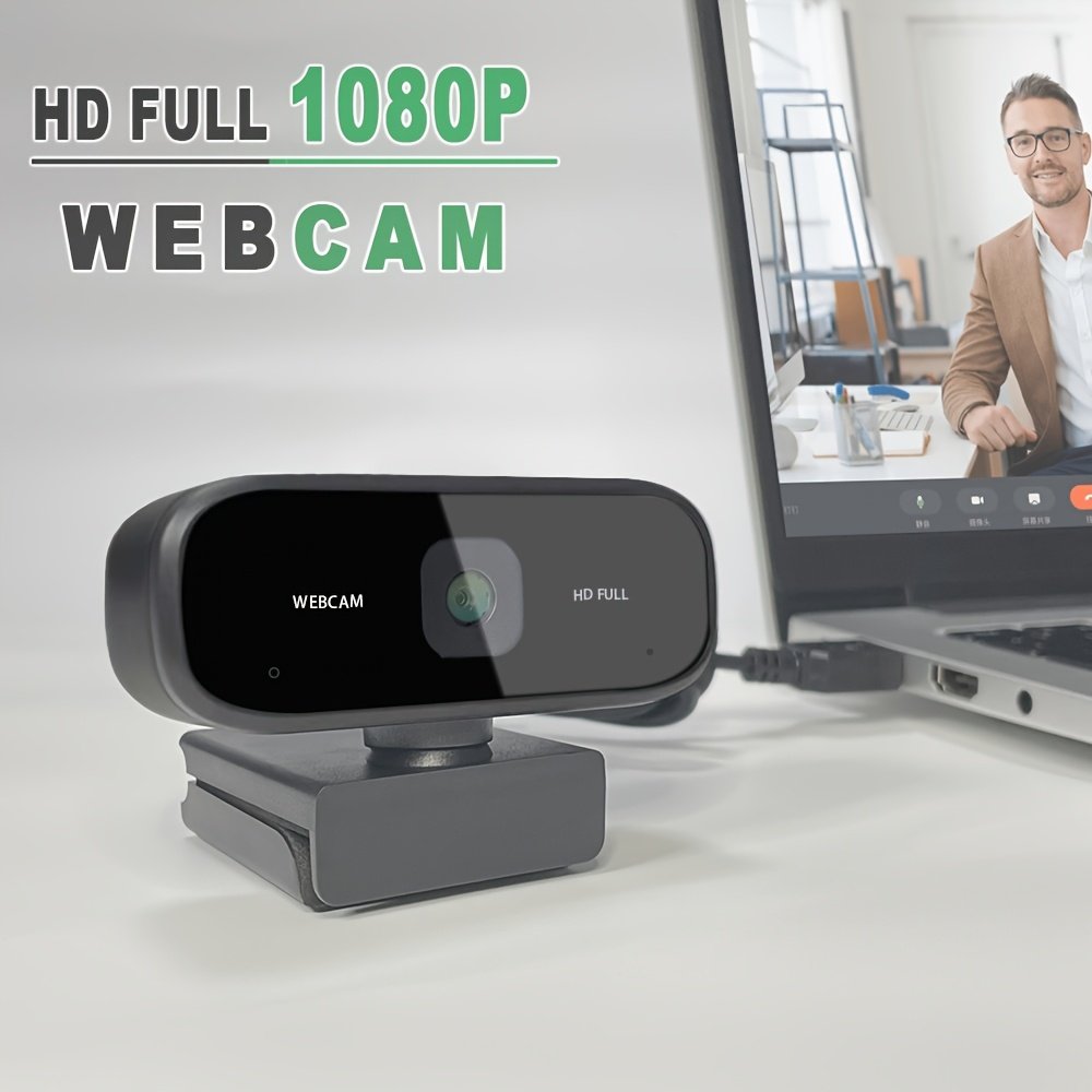 Webcam USB HD 1080P avec Mise au Point Fixe, Plug & Play, Conception Portable, Microphone Intégré , Webcam pour PC